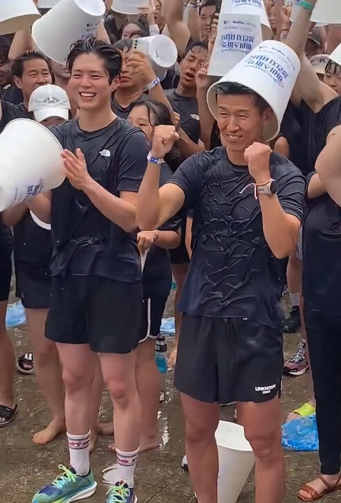 ‘아이스 버킷 챌린지 런’은 비영리재단법인 승일희망재단이 2018년부터 매년 해온 행사로 얼음물을 뒤집어쓰는 챌린지와 달리기(3·5·8㎞ 중 선택)를 결합한 기부 캠페인이다. 승일희망재단은 루게릭병으로 투병하다 세상을 떠난 박승일 전 코치가 루게릭병 전문요양병원을 세우기 위해 설립한 단체다. 올해는 역대 최대 인원인 2000명이 참여해 한강공원 달빛광장을 가득 메웠다.