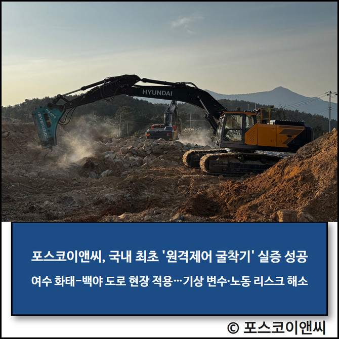 포스코이앤씨 관계자는 "국내 최초 원격제어 굴착기 실증으로 도서산간 건설의 한계를 넘어설 기술적 해법을 확인했다"라며 "HD현대사이트솔루션과의 협력을 강화해 건설현장의 무인화를 앞당기고, 지속적인 디지털 혁신으로 스마트건설의 새로운 기준을 세워가겠다"라고 전했다.