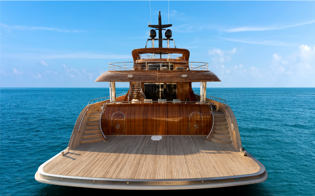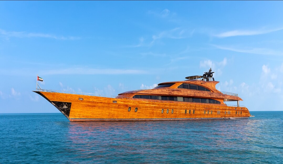 이 슈퍼요트는 티크로만 만들어진 멋진 빈티지 스타일의 외관을 자랑한다. 멀리서 봐도 재질이 목재라는 것을 금방 알수 있다. 아름다운 내부는 이탈리아 가구로 장식되어 있다.
