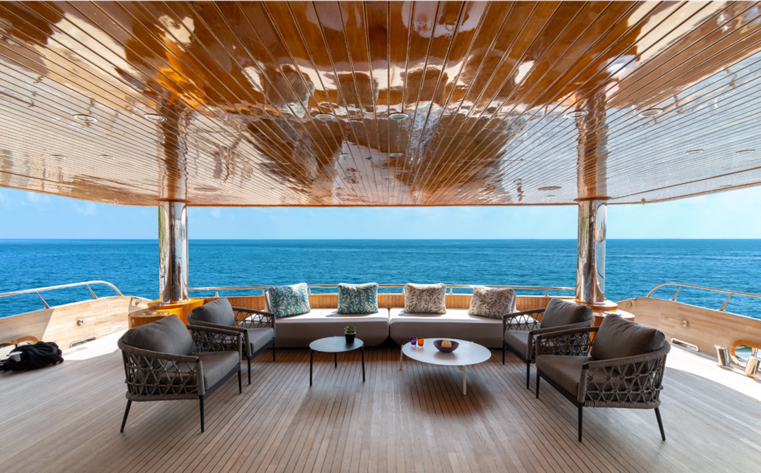 | 매물로 나온 목조 요트의 야외 응접실./Bush & Noble 홈피 |
