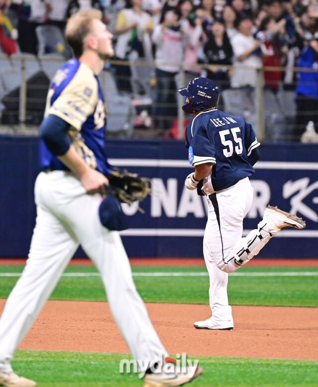 대한민국 이재원이 9회말 무사 1루에서 대타로 등장해 투런 홈런을 때린 뒤 그라운드를 돌고 있다.