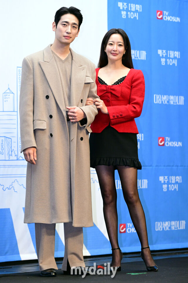 [마이데일리 = 곽경훈 기자] 10일 오후 서울 상암동 스탠포드호텔에서 진행된 TV CHOSUN 새 월화드라마 '다음생은 없으니까' 제작발표회에서 윤박과 김희선이 포즈를 취하고 있다.