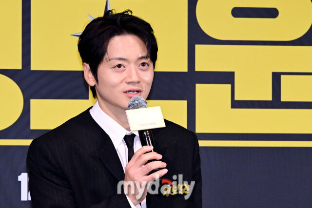 [마이데일리 = 곽경훈 기자] 20일 오후 서울 CGV용산아이파크몰에서 진행된 영화 '정보원' 언론시사회에서 조복래가 취재진의 질문에 답하고 있다.