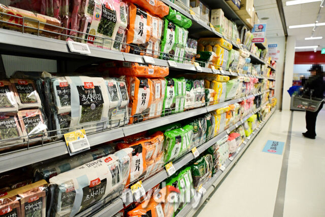 [마이데일리 = 곽경훈 기자] 미국이 15% 상호관세 대상에서 조미김 수출 관세를 면제한 가운데 17일 서울 시내의 대형마트에서 시민이 김을 고르고 있다.