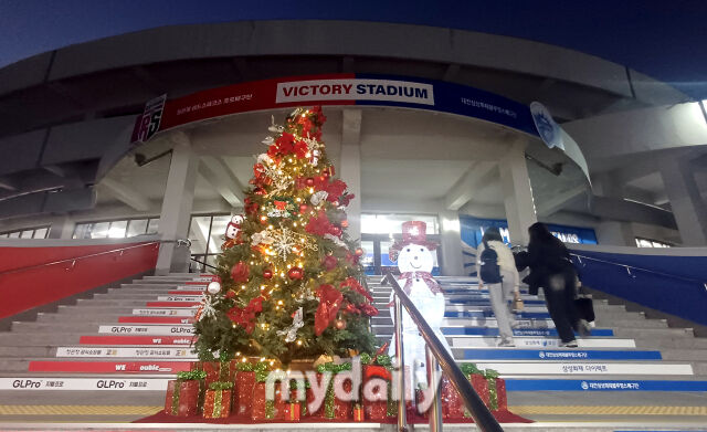[마이데일리 = 대전 유진형 기자] 크리스마스를 일주일 앞둔 17일 대전 충무실내체육관에 크리스마스 트리가 반짝이고 있다.