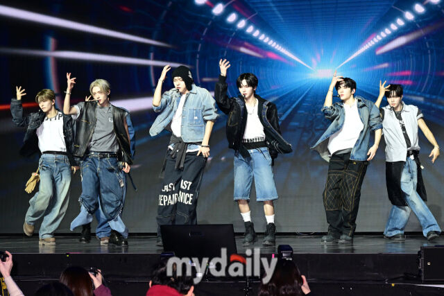 [마이데일리 = 곽경훈 기자] 12일 오후 서울 한남동 블루스퀘에서 진행된 그룹 알파드라이브원 미니 1집 ‘EUPHORIA’(유포리아) 데뷔 쇼케이스에서 멤버들이 타이틀곡을 선보이고 있다.