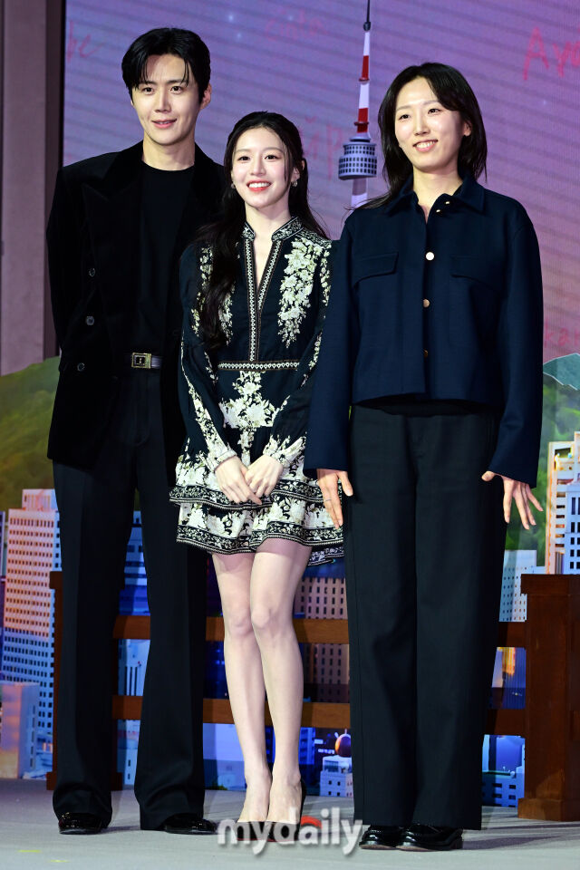 [마이데일리 = 곽경훈 기자] 13일 오전 서울 강남구 조선팰리스 강남에서 진행된 넷플릭스 시리즈 '이 사랑 통역 되나요' 제작발표회에서 김선호,고윤정,유영은 PD(왼쪽부터)가 포즈를 취하고 있다.
