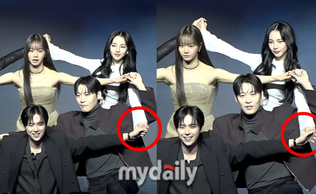앞서 논란은 지난 19일 서울 마포구 호텔 나루 서울 엠갤러리에서 열린 넷플릭스 예능 '미스터리 수사단 시즌2' 제작발표회에서 불거졌다. 단체 포토타임 도중 출연진이 손을 맞잡고 포즈를 취하는 과정에서 김도훈이 카리나의 손을 만지는 듯한 장면이 영상에 담기며 온라인상에서 의혹이 제기된 것.