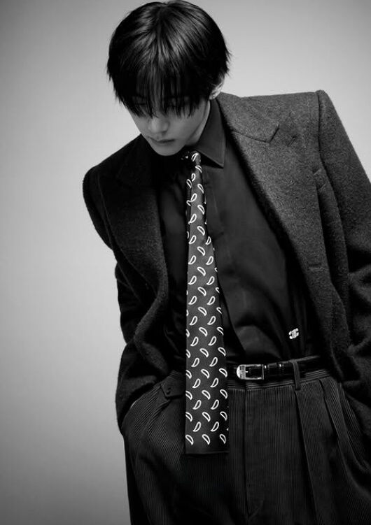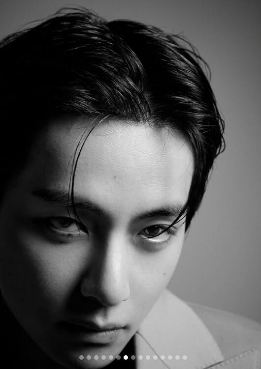 공개된 사진 속 뷔는 흑백 무드를 통해 차분하면서도 시크한 분위기를 자아냈다. 무표정에 가까운 얼굴이었지만, 깊이 있는 눈매와 날카로운 턱선이 어우러져 세련되고 강렬한 인상을 남겼다.