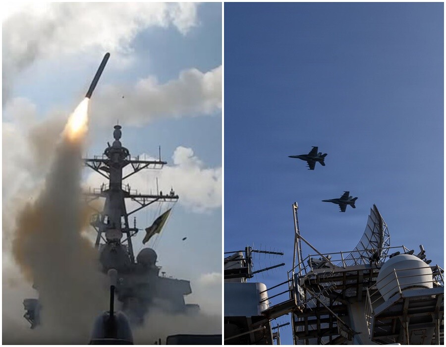 | 항공모함 에이버러햄 링컨호에서 전투기들이 발진하고 있다./미 정부 사령부 소셜미디어 |