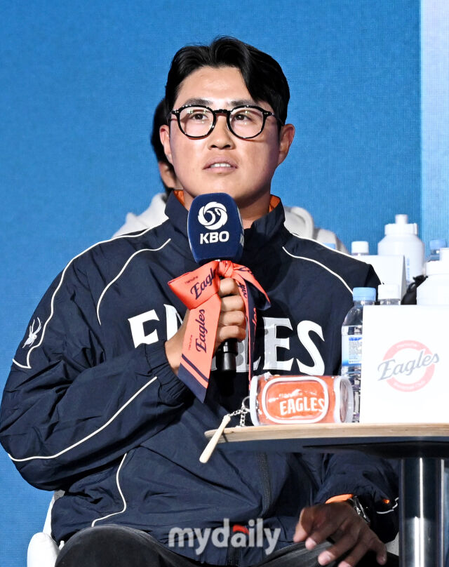 [마이데일리 = 송일섭 기자] 한화 채은성이 26일 오후 서울 잠실 롯데호텔에서 진행된 '2026 신한SOL KBO리그 미디어데이'에서 이야기를 하고 있다.