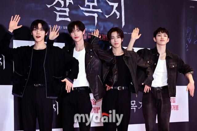 [마이데일리 = 곽경훈 기자] 30일 오후 서울 잠실 롯데시네마 월드타워에서 진행된 영화 '살목지'VIP 시사회 포토월에 클로즈 유어 아이즈 여준, 성민, 경배, 승호가 참석해 포즈를 취하고 있다.