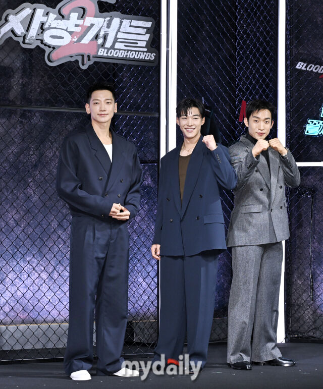 [마이데일리 = 송일섭 기자] 배우 정지훈, 우도환, 이상이(왼쪽부터)가 31일 오전 서울 장충동 앰배서더 서울 풀만 호텔에서 진행된 넷플릭스 시리즈 ‘사냥개들 시즌2'(극본/연출 김주환) 제작발표회에서 포토타임을 갖고 있다.