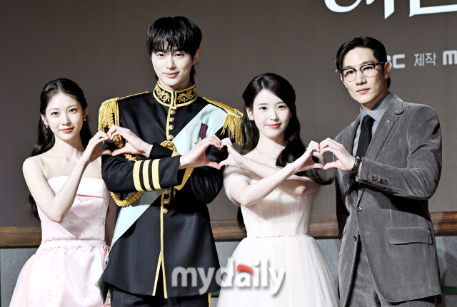 [마이데일리 = 송일섭 기자] 배우 공승연, 변우석, 아이유, 노상현(왼쪽부터)이 6일 오후 서울 역삼동 조선팰리스호텔에서 진행된 MBC 금토드라마 '21세기 대군부인' (극본 유지원, 연출 박준화 배희영) 제작발표회에서 포토타임을 갖고 있다.