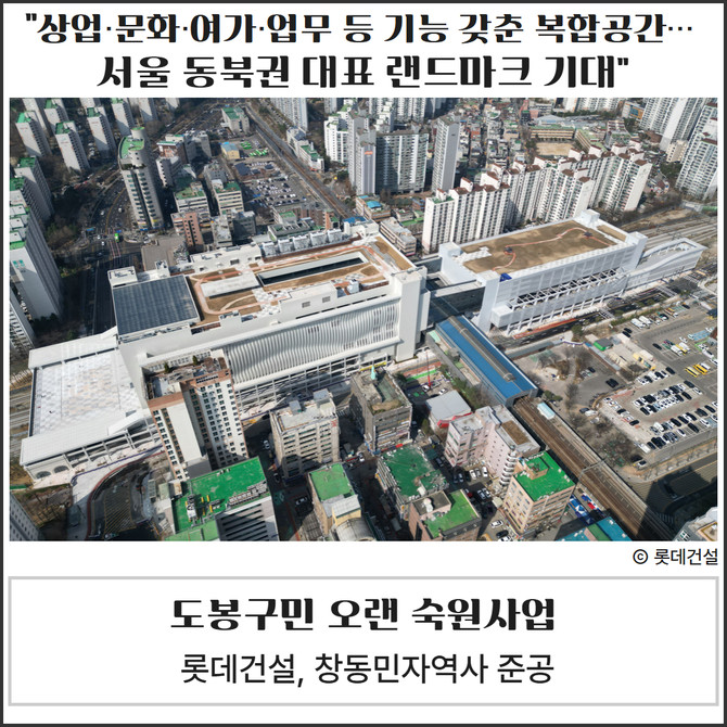 롯데건설이 지난달 30일 공사를 마친 창동민자역사가 쇼핑·문화 등으로 구성된 서울 동북권 대형 복합시설로 거듭난다.