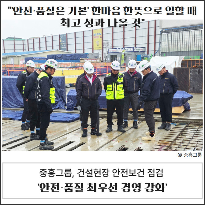 최근 건설현장에서 효과적 산업재해 예방을 위해 경영책임자 역할이 강조되는 가운데, 중흥그룹이 안전보건 관리체계 강화를 위해 경영진이 직접 참여하는 현장 점검을 진행했다.