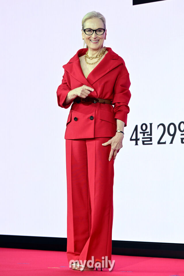 [마이데일리 = 곽경훈 기자] 8일 오전 서울 광화문 포시즌스 호텔 서울에서 진행된 '악마는 프라다를 입는다 2' 내한 기자 간담회에서 메릴 스트립이 포즈를 취하고 있다.