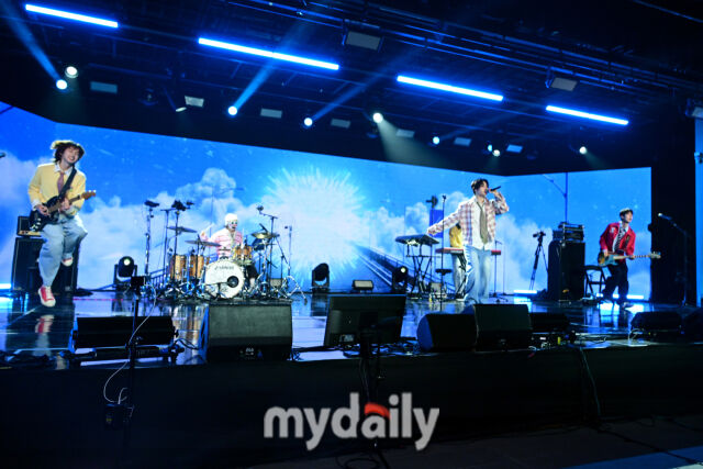 [마이데일리 = 곽경훈 기자] 8일 오후 서울 마포 문화비축기지에서 진행된 밴드 하츠웨이브 데뷔 앨범 ‘The First Wave(더 퍼스트 웨이브)’ 발매기념 쇼케이스에서 멤버들이 수록곡을 선보이고 있다.