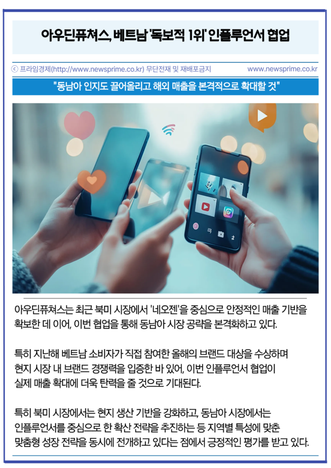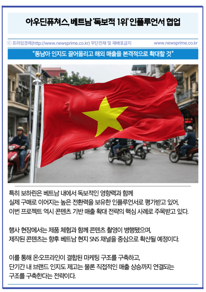 특히 보하린은 베트남 내에서 독보적인 영향력과 함께 실제 구매로 이어지는 높은 전환력을 보유한 인플루언서로 평가받고 있어, 이번 프로젝트 역시 콘텐츠 기반 매출 확대 전략의 핵심 사례로 주목받고 있다.