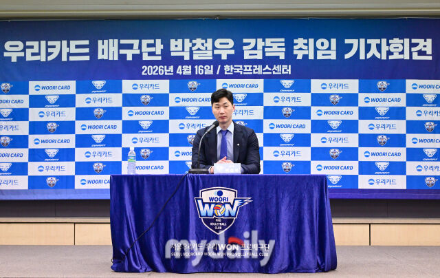 댓글 쓰기 제목 [MD포토] 박철우 감독 '우리카드 감독 취임 기자회견'